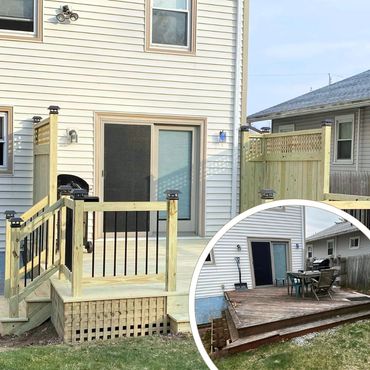 From decay to durability, in the above photo you will see this access ramp was in tough shape as the original structure was rotting and not deemed safe. We removed the old ramp and built a brand new access to this building using Trex Decking which is not only resilient but aesthetically pleasing.